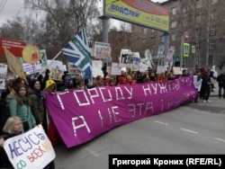 Шествующие развернули новый главный баннер с лозунгом "Городу нужны мы, а не эта тряпка", сообщает наш корреспондент.