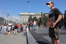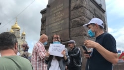 Акция солидарности с Хабаровском прошла сегодня в центре Новосибирска. Как сообщает корреспондент Сибирь.Реалии, 6 человек вышли на одиночные пикеты. Соблюдая между собой дистанцию, держат в руках плакаты с надписями "Путин вор", "Хабаровск, мы с тобой", "Спасите Байкал". Полиция предупреждала протестующих о необходимости соблюдать правила одиночного пикетирования, но в происходящее не вмешивалась. Присутствовали и вооружённые сотрудники Росгвардии. Еще около 40 человек собрались на постаменте монумента и общаются между собой.