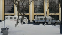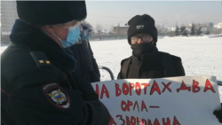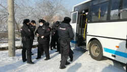 Полицейские в итоге вышли из автобуса, а задержанных - их примерно пятеро - везут в отделение, где будут составлять протоколы о нарушении социальной дистанции во время проведения массового мероприятия. В Чите, напомню, сегодня около -30. Акция здесь закончилась.