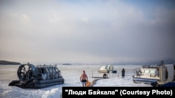 В январе и феврале пролив покрыт льдом, но он ещё не прочный. Поэтому машинам нельзя на него выезжать. В это время людей с материка на Ольхон по льду перевозят на хивусах. Это судно на воздушной подушке. Место стоит 500 рублей.